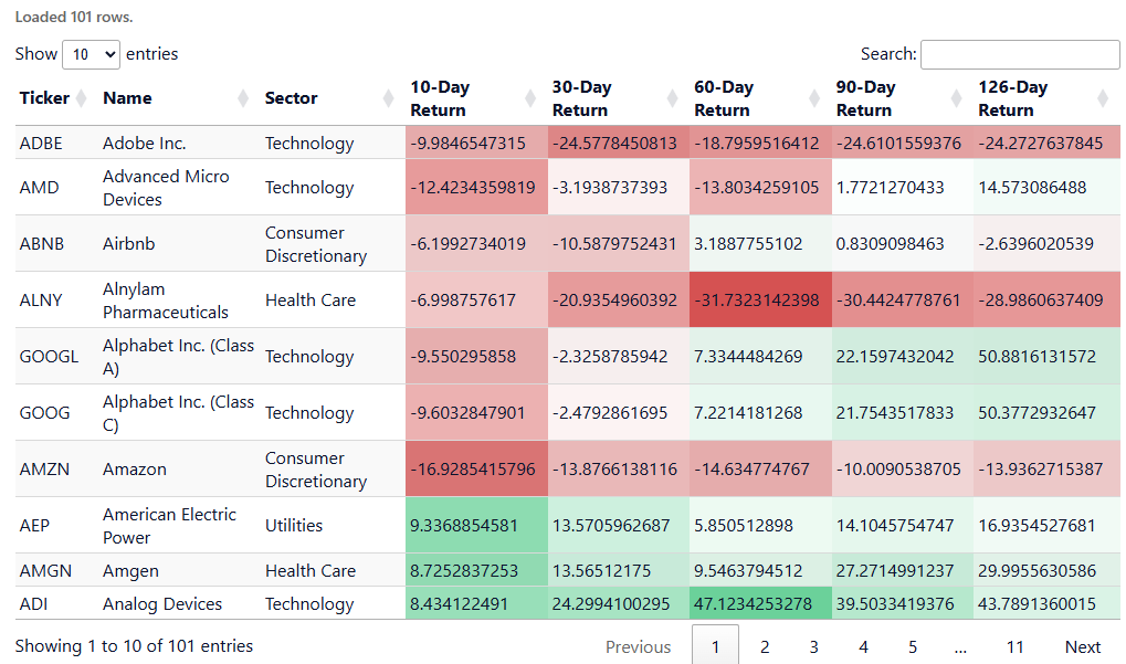 Track price and risk metrics for all the companies inside the Nasdaq 100